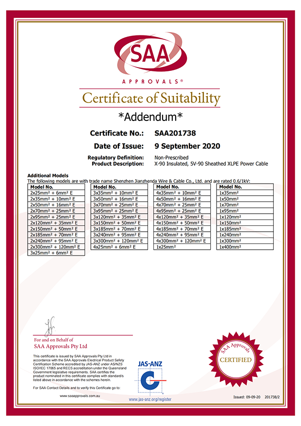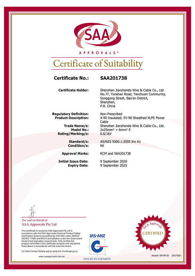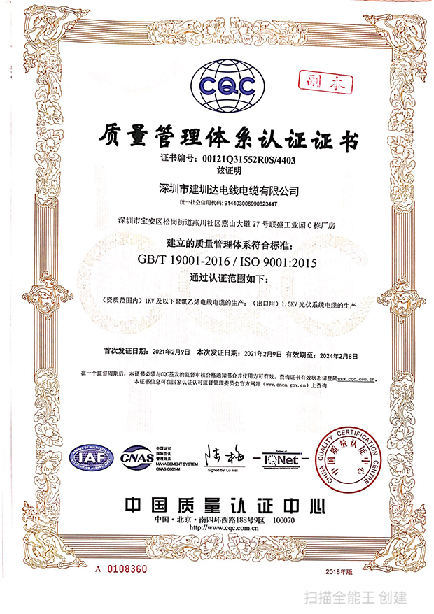 深圳建圳達(dá)電線電纜有限公司,成立于2000年,是一家電線電纜制造商,我們通過了世界各地不同市場(chǎng)的多數(shù)認(rèn)證,如:CCC、RoHS、CB、SAA、TUV、VDE、PSE、BPS、UL、CSA。我們根據(jù)定制產(chǎn)品不斷更新新的認(rèn)證。經(jīng)過數(shù)十年的發(fā)展,我們與來自世界各地的客戶建立了長(zhǎng)期的合作關(guān)系。我們?cè)?jīng)是菲律賓機(jī)場(chǎng),,柬埔寨的電力站,美國(guó)的醫(yī)院,工廠,埃塞俄比亞的水電站項(xiàng)目。我們是一家值得信賴的電線供應(yīng)商。