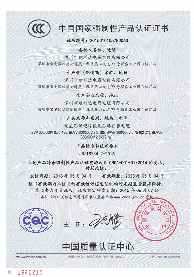 建圳達(dá)電纜立足于中國(guó)深圳,擁有技術(shù)精湛的隊(duì)伍、現(xiàn)代化生產(chǎn)設(shè)備、精密的檢測(cè)儀器,從原材料、生產(chǎn)、成品嚴(yán)格按照國(guó)家標(biāo)準(zhǔn)檢測(cè),通過多個(gè)認(rèn)證。